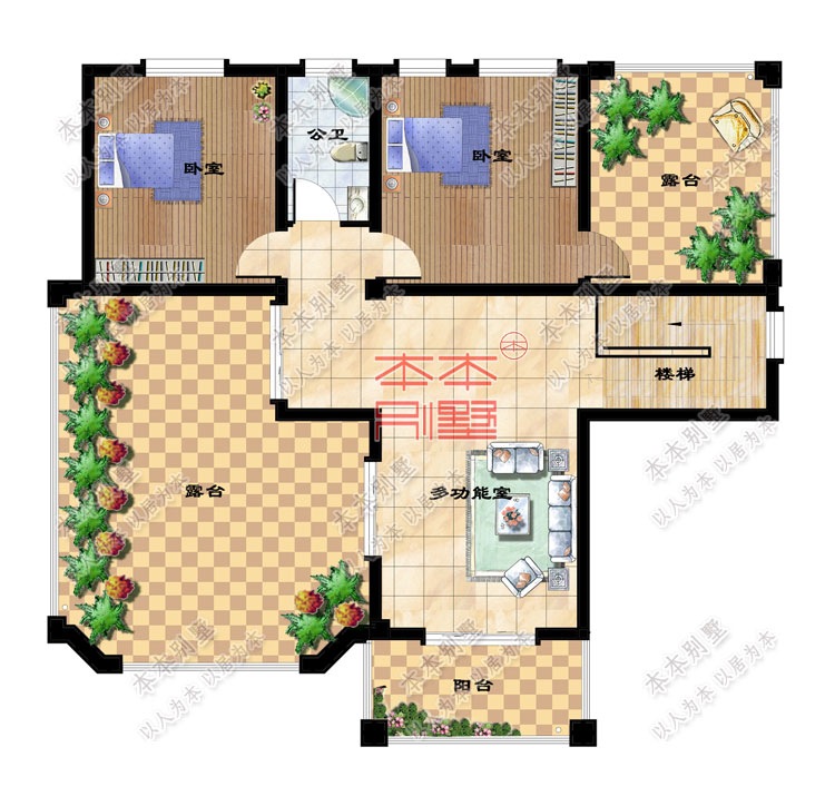 [別墅圖紙超市]三層復(fù)式客廳別墅設(shè)計(jì)圖自建農(nóng)村帶車庫效果圖