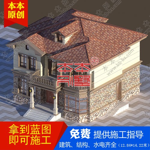 12*14美式別墅鄉(xiāng)村別墅農(nóng)村別墅設(shè)計(jì)圖紙二層別墅設(shè)計(jì)圖
