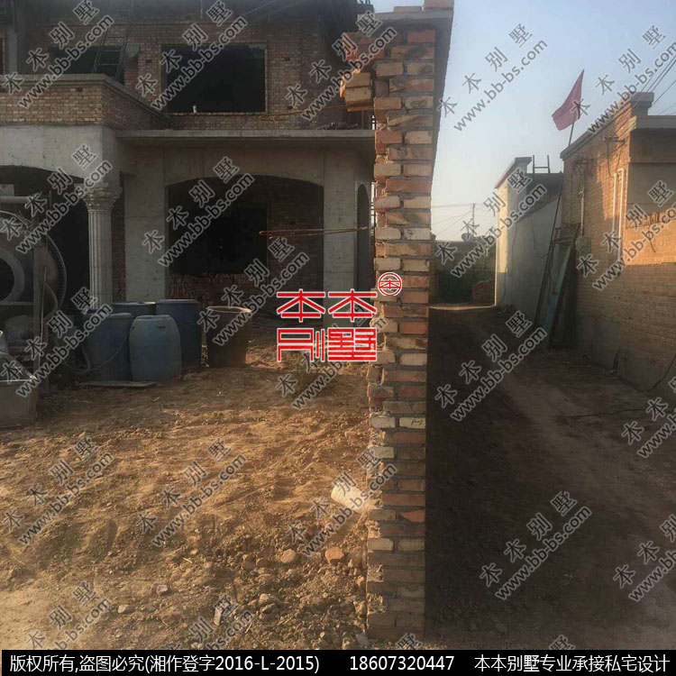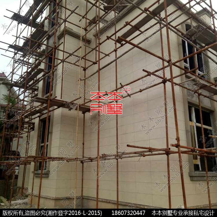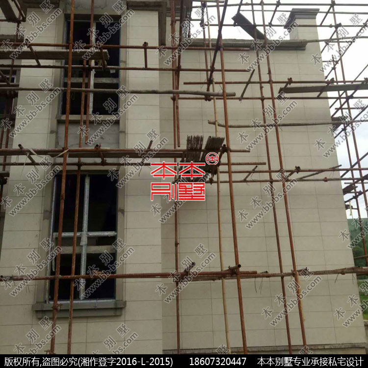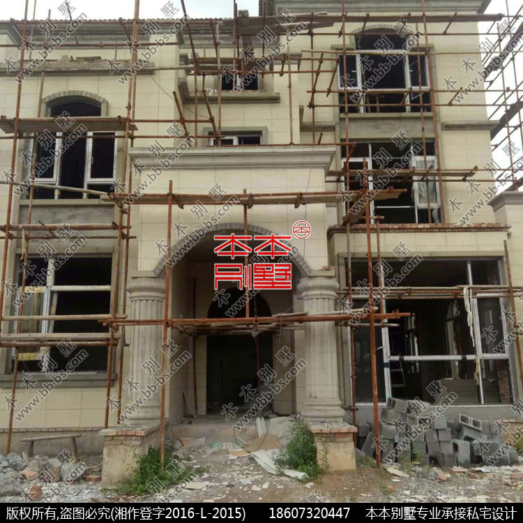 這是業(yè)主發(fā)來施工中的實拍,外墻未上真石漆的歐式構件。
