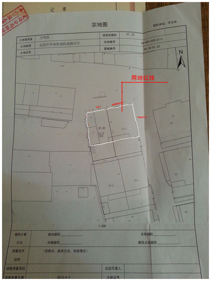 定位紅線圖..宅基地比較方正,西北角是個斜角。