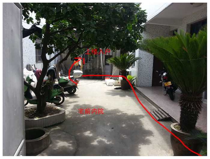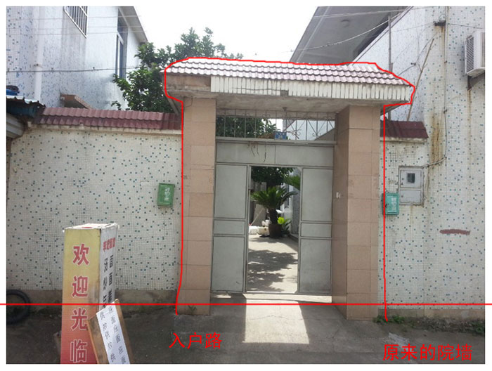 入戶的大門及院院及側(cè)面山墻。