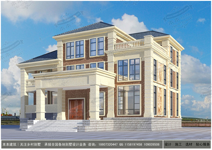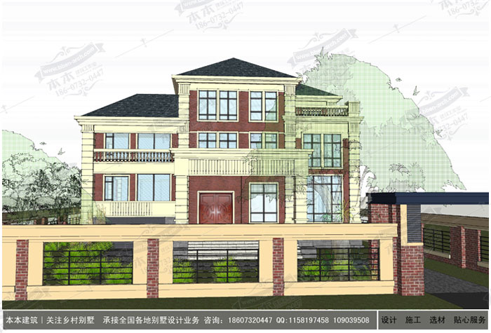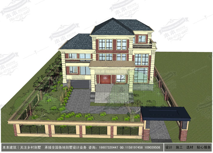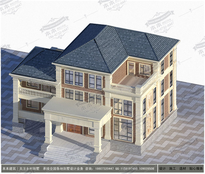 本棟設(shè)計(jì)介紹就到這里。本棟三層帶車庫帶露臺的別墅就為您介紹到這里,有需要設(shè)計(jì)的朋友請咨詢我們,本本建筑咨詢熱線:18607320447 QQ:109039508 1158197458 我們努力讓鄉(xiāng)村更漂亮。