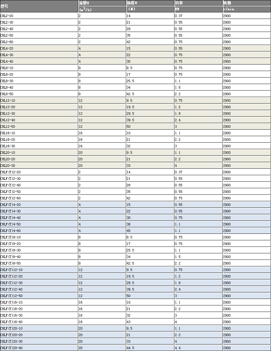 CHL,CHLK和CHLF(T)型泵主要用于家庭型中央空調(diào)循環(huán)及工業(yè)上液體的傳輸。如脫礦物質(zhì)水、軟水、凈化系統(tǒng)、輕油等的循環(huán)和增壓。
