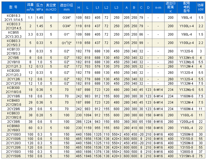 上海二泵KCB、2CY型齒輪式輸油泵適用于輸送不含固體顆粒和纖維,如原油、柴油、潤滑油、動植物油等。配用銅齒輪可輸送低閃點液體,如汽油、苯等。無腐蝕性、溫度不高于70℃,粘度為5~1500cst的潤滑油或其它性質類似的液體。如需要高溫,本公司可以配備用耐高溫材料即可。