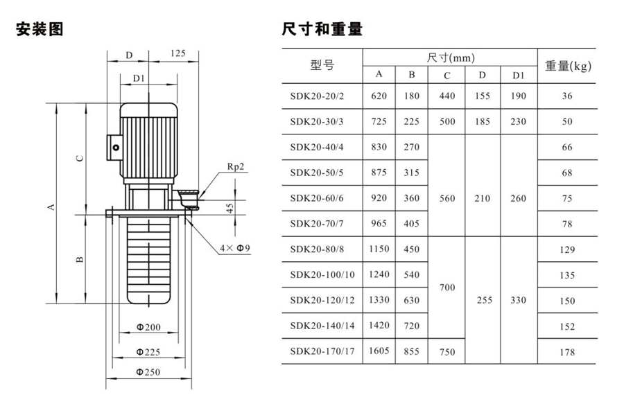 SDK/SDKT為配用標準電機的非自吸立式多級離心泵,電機軸和泵軸用聯(lián)軸器直接聯(lián)接的結(jié)構(gòu)。為滿