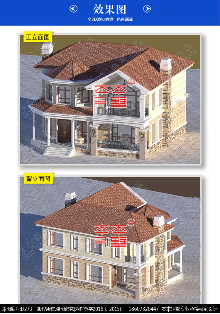 圖紙編號(hào):D273 新農(nóng)村美式二層自建獨(dú)棟小別墅