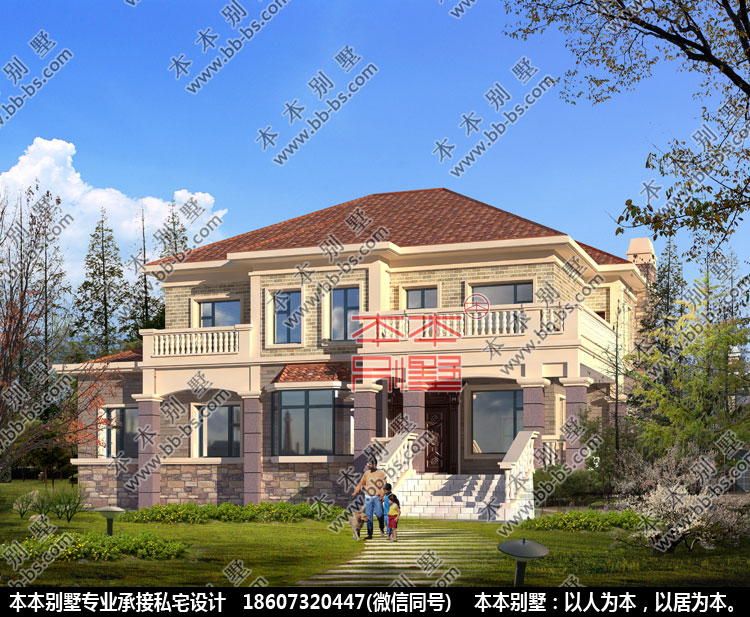 20多年父母離開農(nóng)村進城做生意,現(xiàn)在李女士已接手父母的生意。父母在外漂泊這多年,找過工、做過小生意、失敗過、也得意過。隨著年經(jīng)越來越大,越想回老家來。老家的房子倒了后,沒辦法只好回家建房。也找了很多戶型做參考,總覺得不是那么的對味。本本別墅設(shè)計師和李女士多次溝通要求后,基本一稿通過了外觀效果圖: