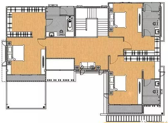 一層有一個客廳、一個餐廳、一個廚房、一主臥一次臥,為了更好的利用空間,樓底一側(cè)可以裝修成一個衣帽間。一進(jìn)二樓,就看到一個起居室,起居室還有一個陽臺,另外還有三間臥室和三個衛(wèi)生間,空出來的那間屋子可以做健身房也可以做書房、舞蹈房,至于最后怎么使用,最后你說了算。