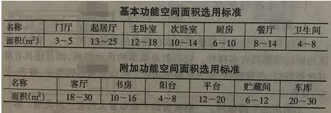 進(jìn)行別墅的平面設(shè)計(jì),首先就要確定空間的面積。根據(jù)農(nóng)村的特殊情況和實(shí)際需要,基本功能空間的面積應(yīng)符合下圖的要求。附加功能空間標(biāo)準(zhǔn)也應(yīng)按圖中數(shù)值選用。