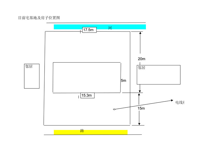 下面是該業(yè)主的宅基地——占地17.5米寬、35米深。前面是路,背面是河,左右是鄰居。