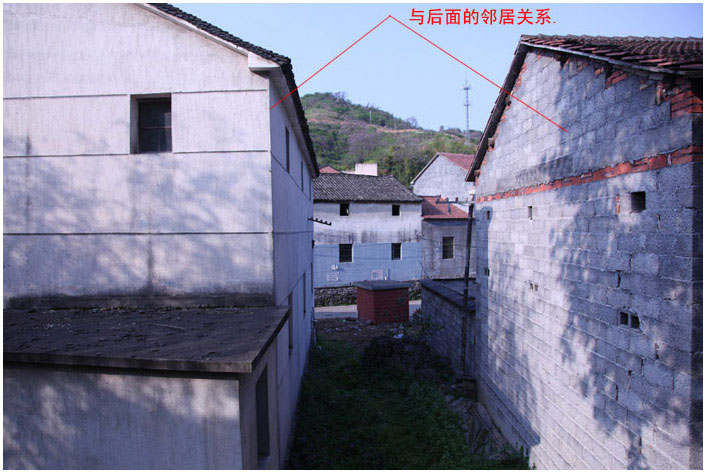 與后面老房子的退讓間距約二米多,所以業(yè)主一再?gòu)?qiáng)調(diào),不能比鄰居房子高太多,控制總高度11M。