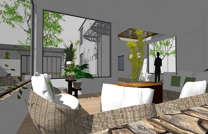 5、一層的封閉式廚房和餐廳單獨(dú)設(shè)立在一層的院落,廚房和餐廳相互連通,讓居住者就餐時(shí)更為便利。